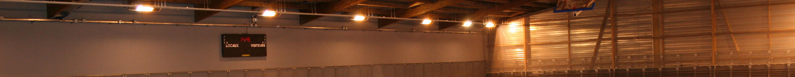 Sol souple avec les différents tracés permettant de faire le plus grand nombre d’activités. Gymnase sans fenêtre donc pas de lumière du jour. Salle de réunion située dans le même complexe. Vestiaire joueurs, arbitres et toilettes.
