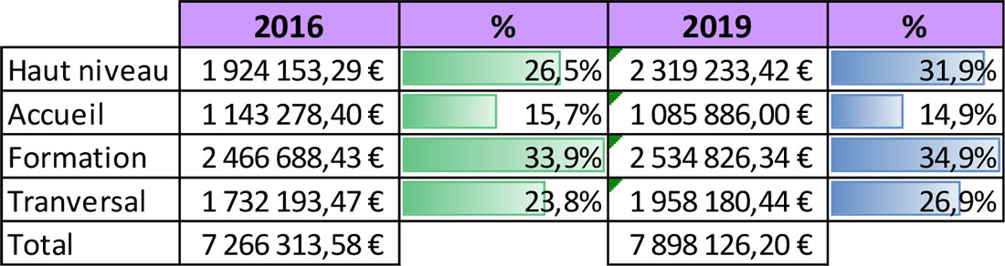 - Quatre activités : « haut niveau », « formation », « accueil », « transversal ».
