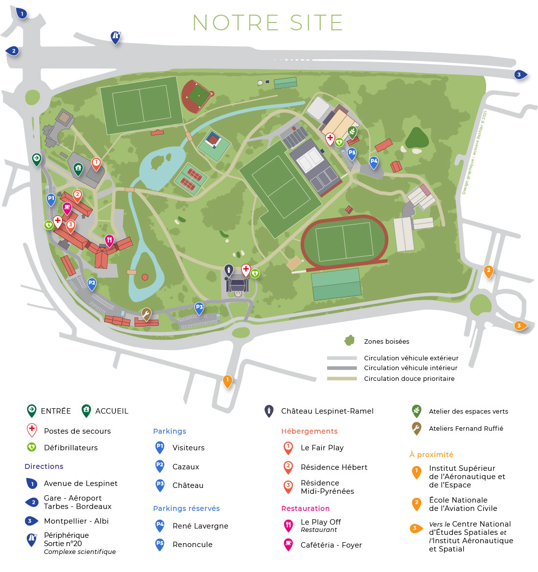 Le CREPS de Toulouse bénéficie de sept parkings sur son site. Les possibilités de stationnements sont adaptées selon les besoins et la fréquentation.